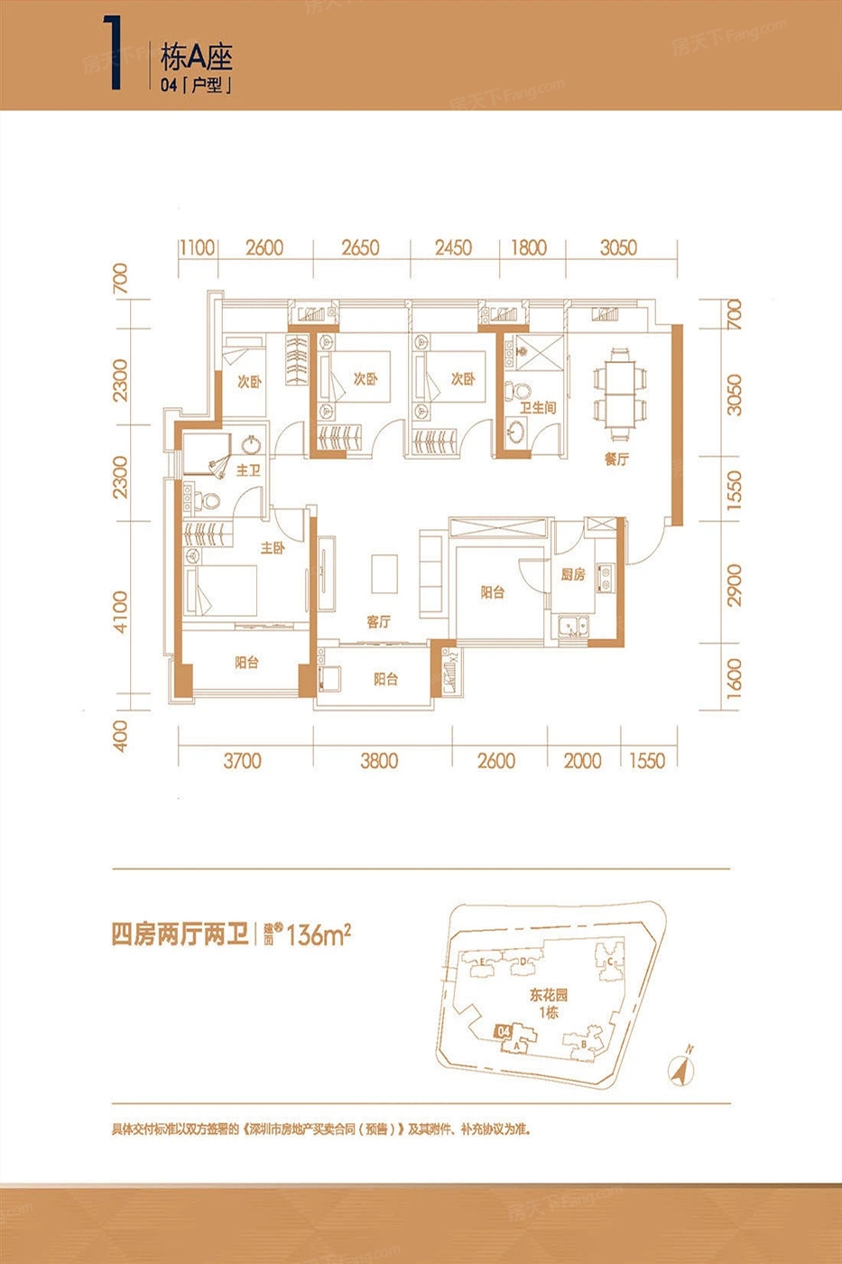 1栋A座04户型 4室2厅1厨2卫 136.00㎡