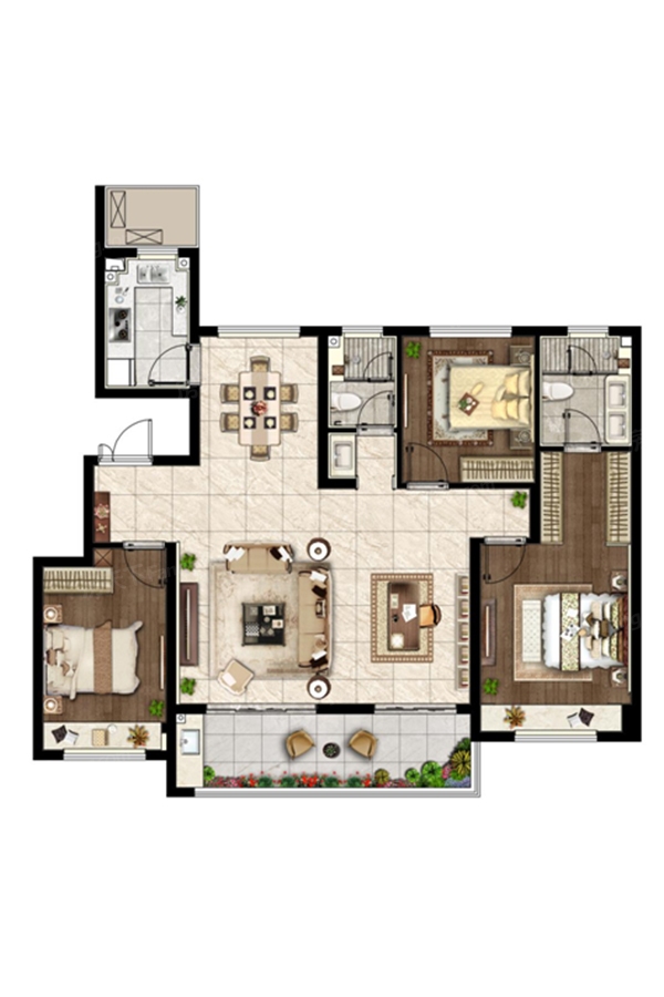 甫韵127平米户型 3室2厅1厨2卫