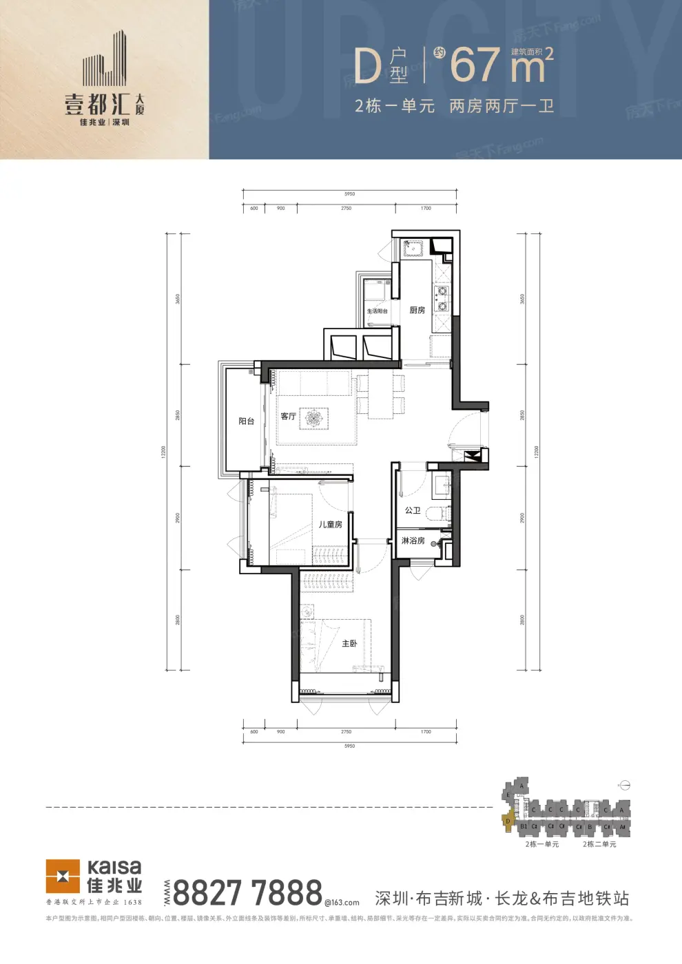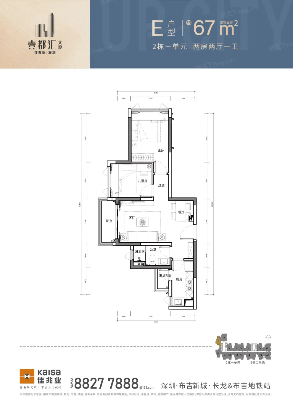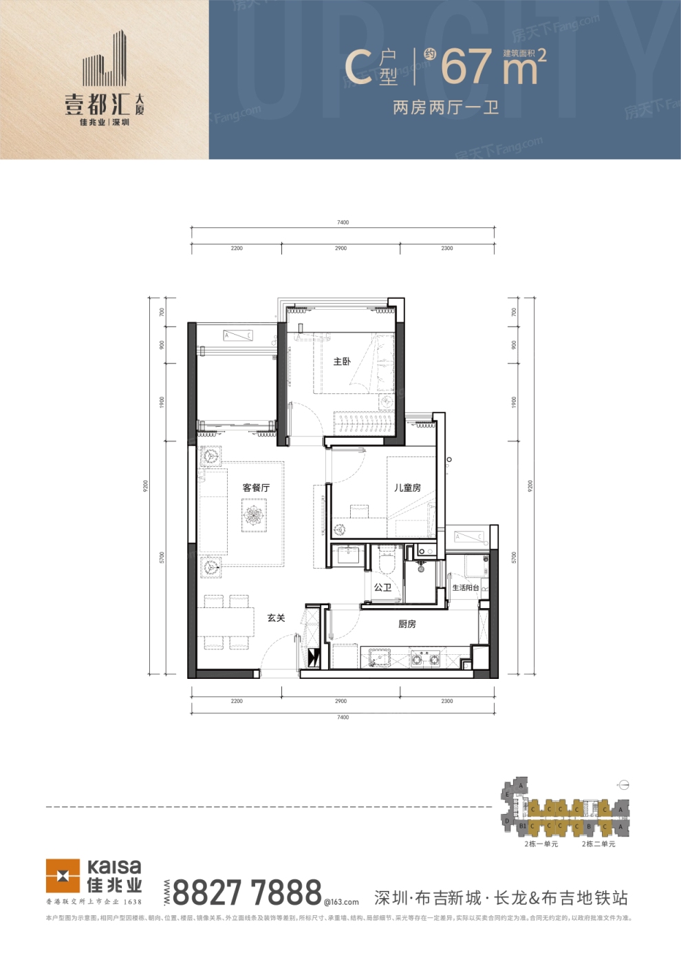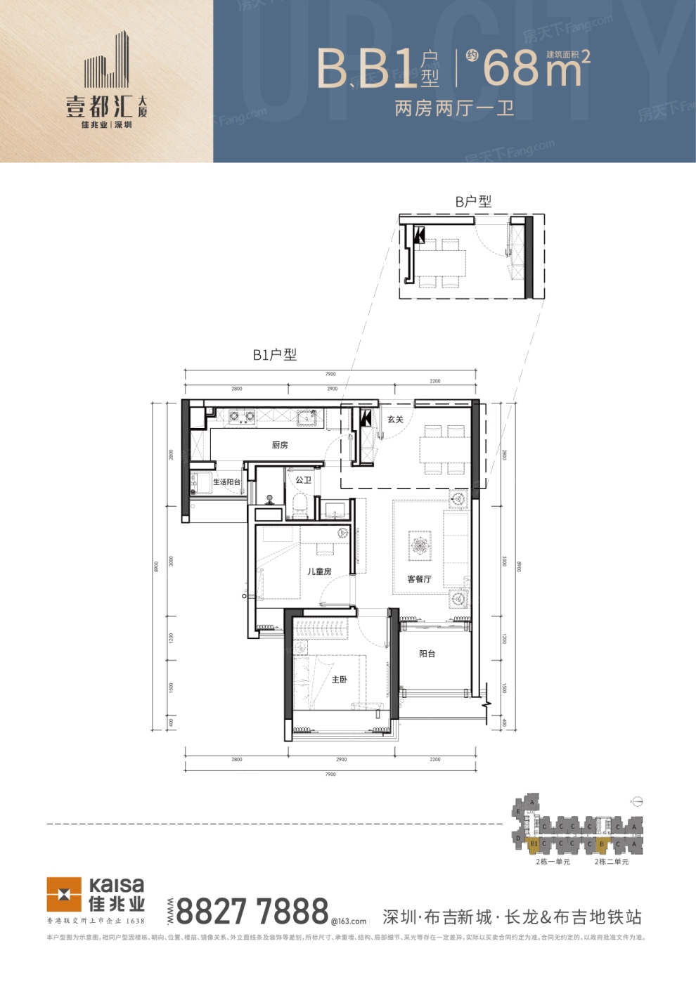 B、B1户型-68㎡ 2室2厅1厨1卫