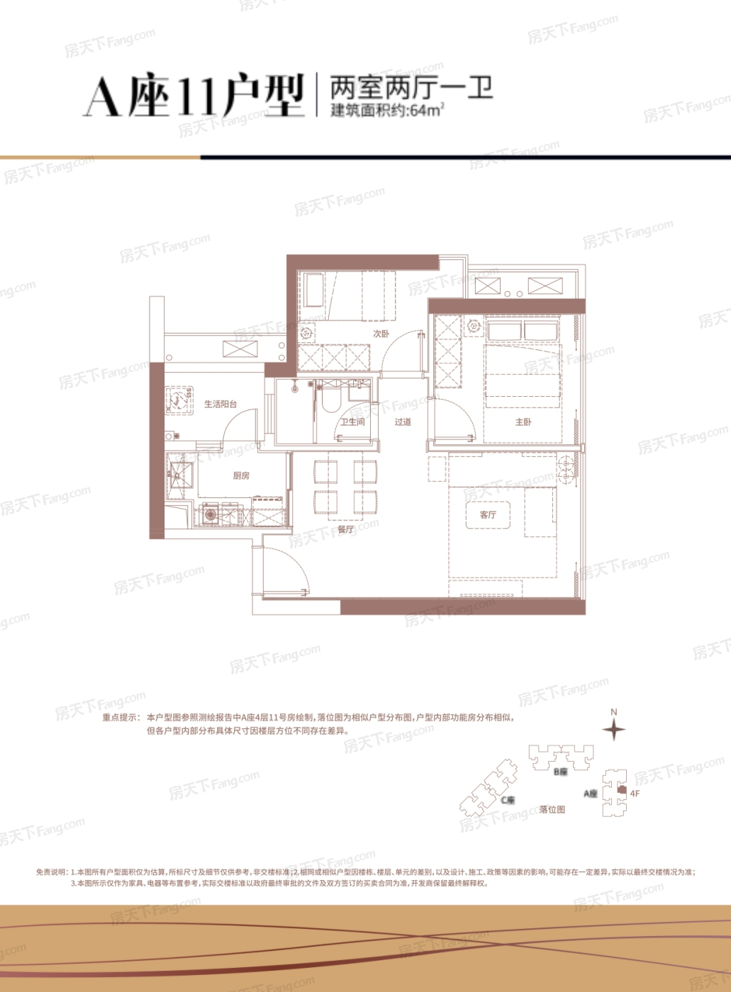 A座11户型 2室2厅1厨1卫