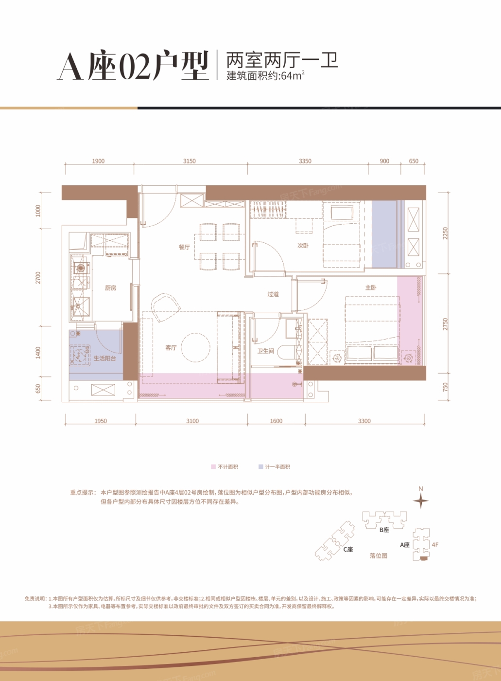 A座02户型 2室2厅1厨1卫