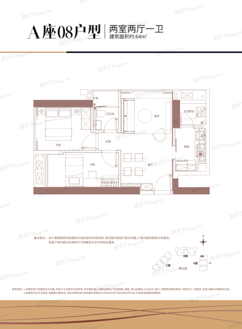 A座08户型 2室2厅1厨1卫