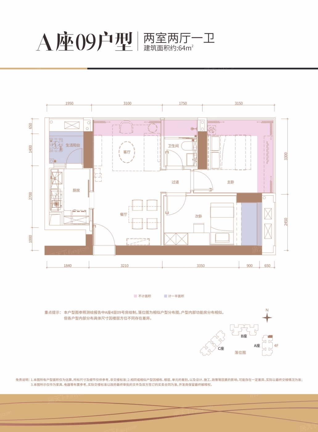 A座09户型 2室2厅1厨1卫