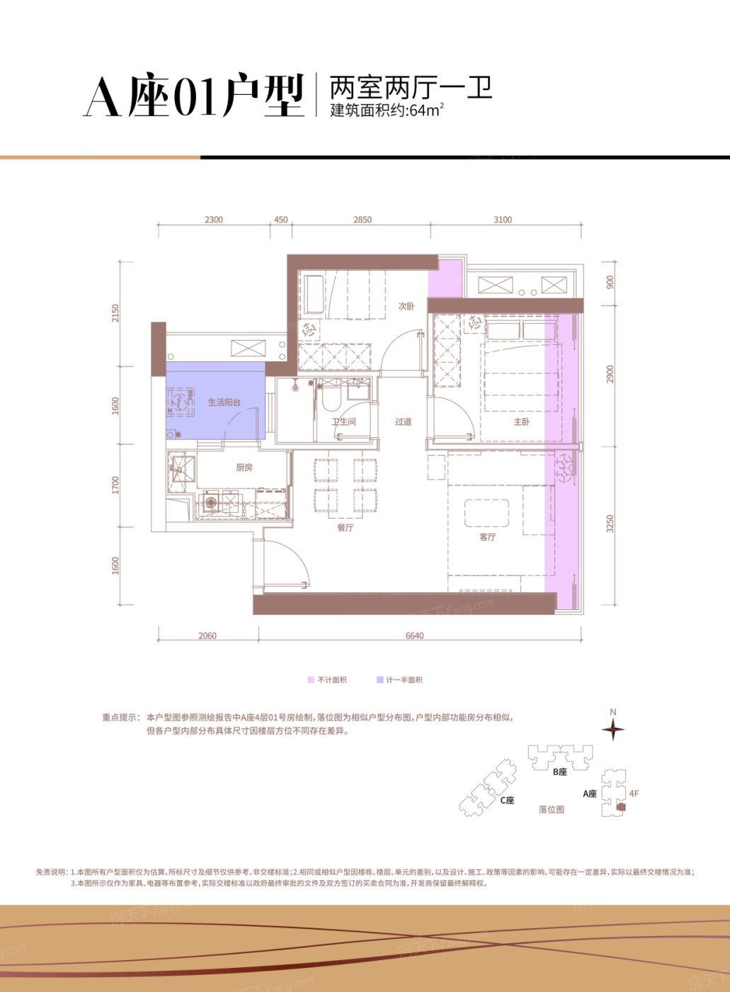 A座01户型 2室2厅1厨1卫